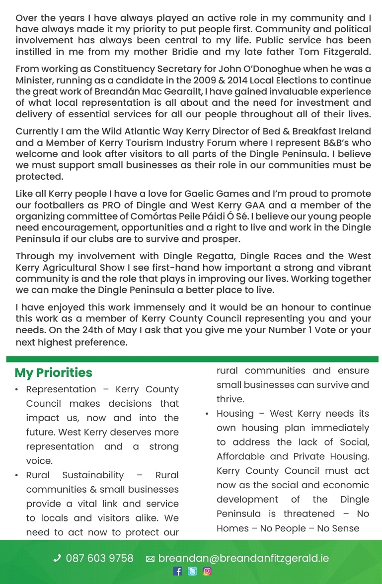 Leaflets as gaelige agus as bearla Breandán Fitzgerald- Fianna Fáil – Dingle #LE19 » BFitzgerald4E