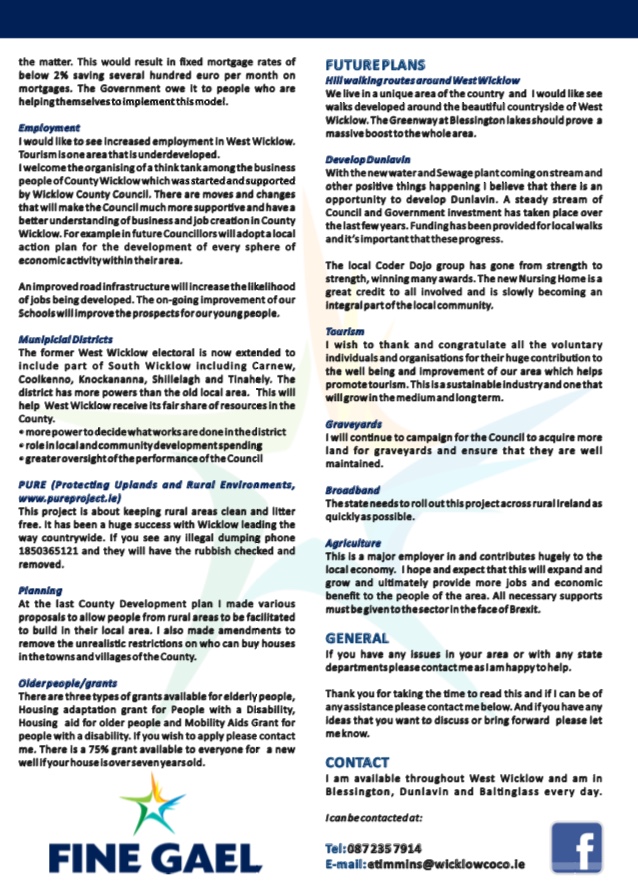 Leaflet from Edward Timmins -Fine Gael -Baltinglass #LE19 » ETimmins4
