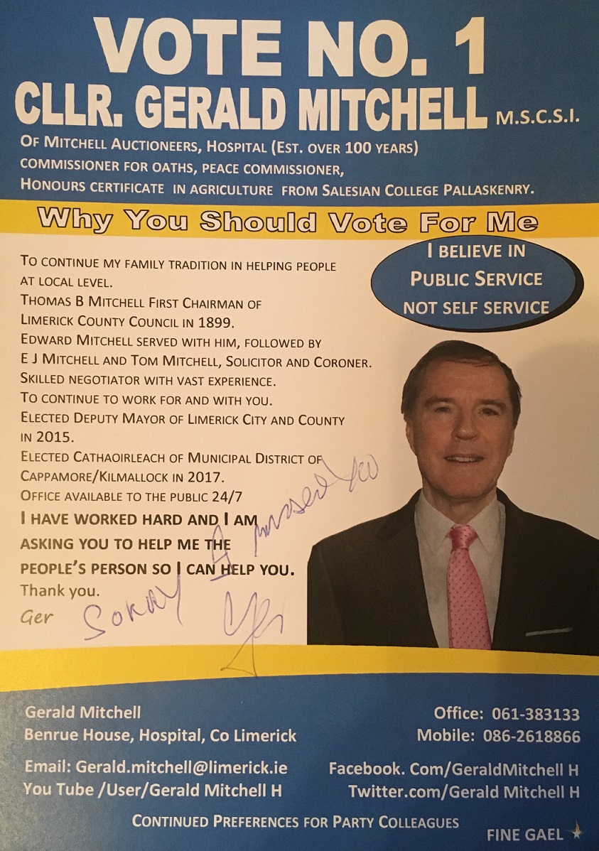 Leaflet from Gerald Mitchell – Fine Gael – Cappamore-Kilmallock #LE19 » GeraldMitchell1