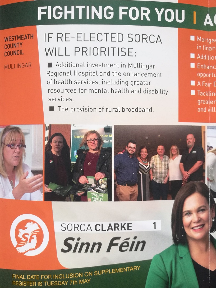 Leaflet from Sorca Clarke -Sinn Féin – Mullingar #LE19 » SorcaClarke2