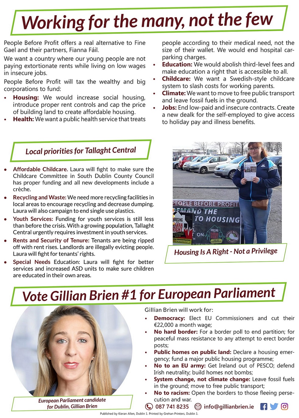 Leaflet from Laura O’Reilly – People Before Profit – Tallaght Central #LE19 » LauraOReillyPBP2
