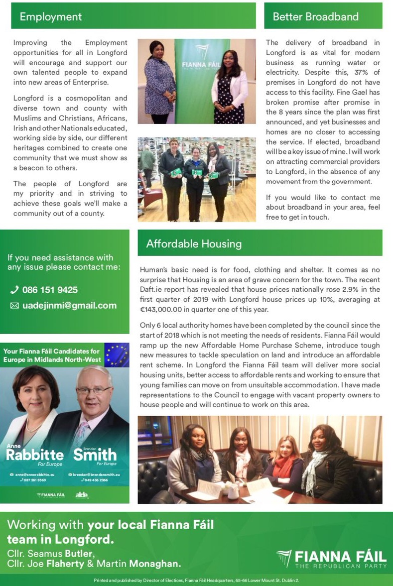 Leaflet from Uruemu Adejinmi – Fianna Fáil – Longford #LE19 » UruemuAdejinmi2