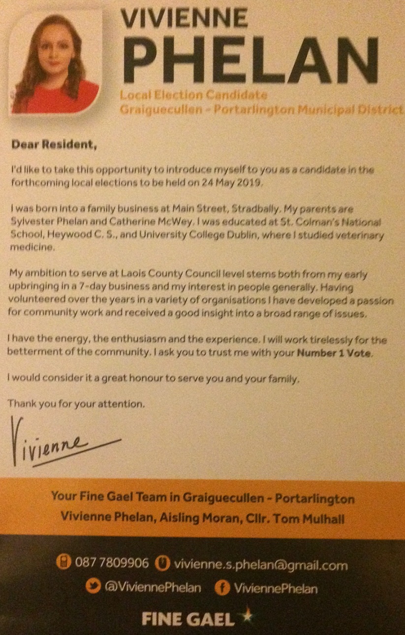 Leaflet from Vivienne Phelan -Fine Gael – Graiguecullen-Portarlington #LE19 » VPhelan2