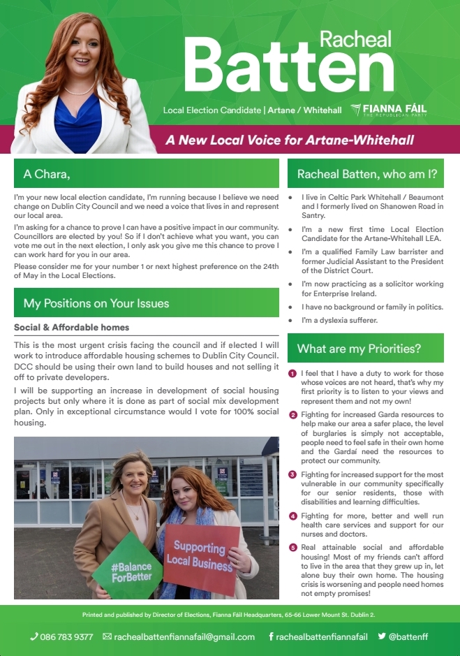 Leaflet from Racheal Batten -Fianna Fáil – Artane Whitehall #le19 » RachaelBatten1