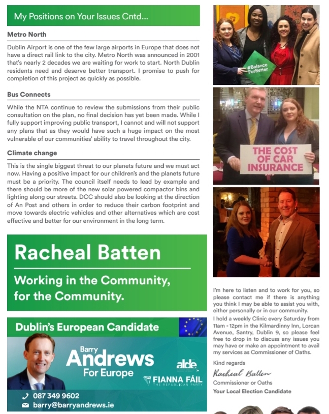 Leaflet from Racheal Batten -Fianna Fáil – Artane Whitehall #le19 » RachaelBatten2