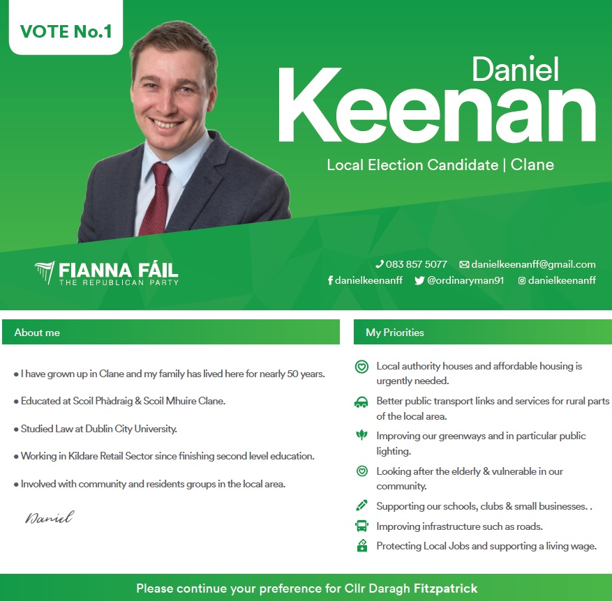 Leaflet from Daniel Keenan -Fianna Fáil – Clane #LE19 » DanielKeenan1