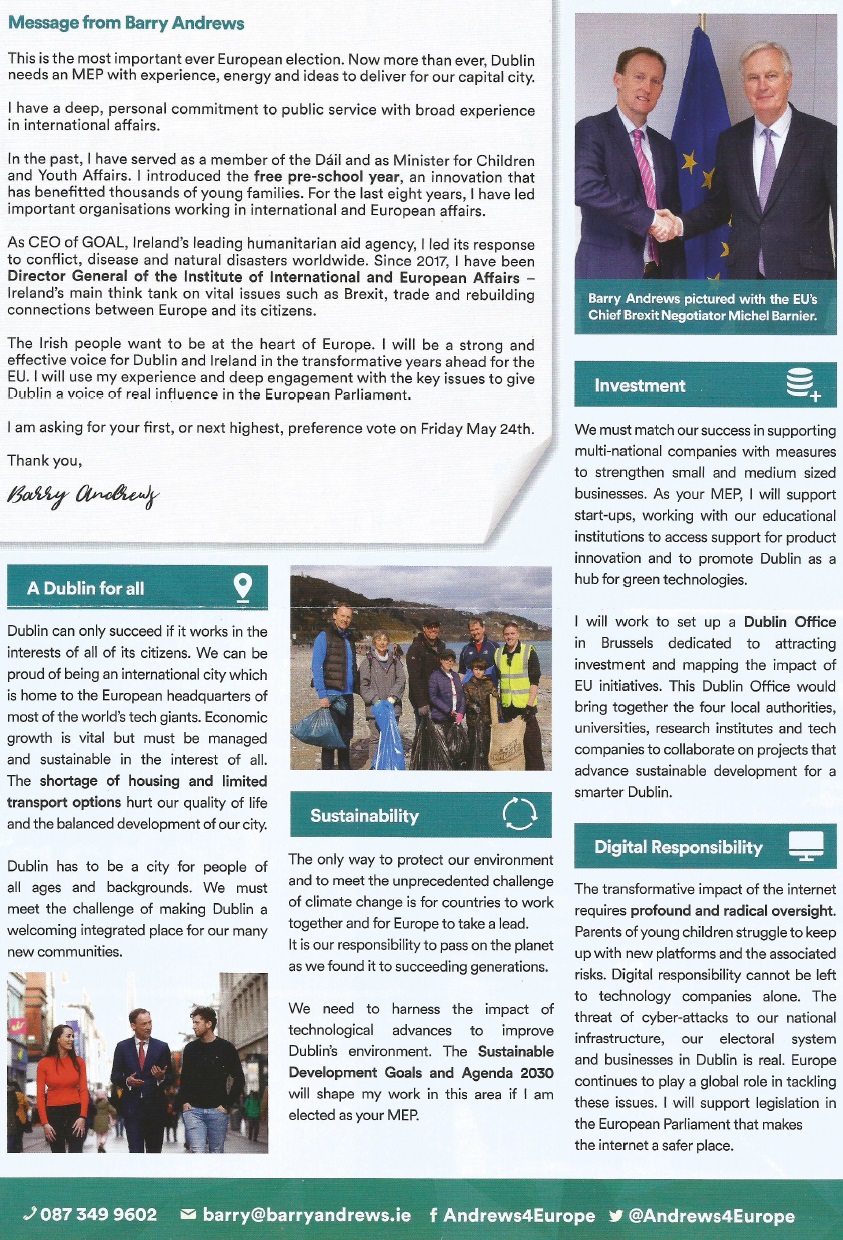 Leaflet from Barry Andrews -Fianna Fáil – Dublin #EP2019 » BAndrews2