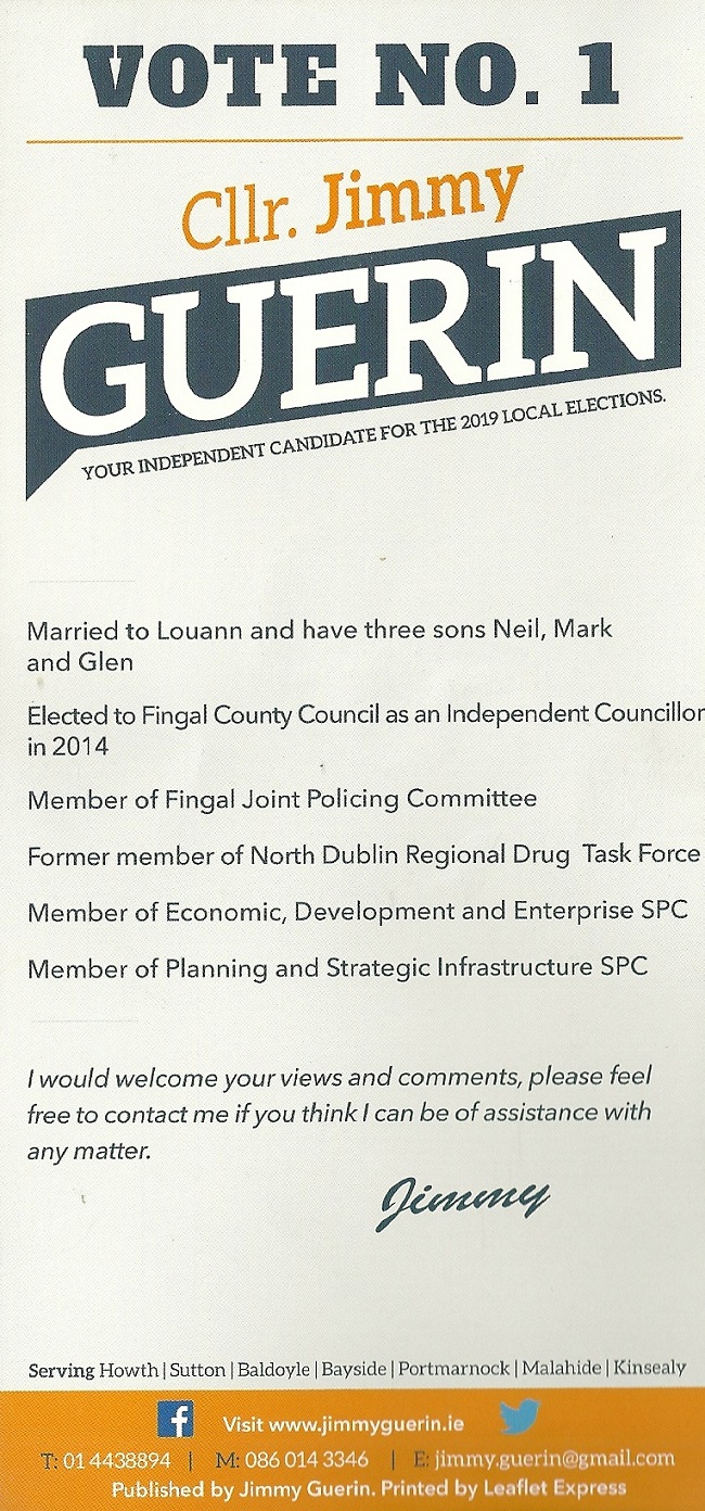 Leaflet from Jimmy Guerin -Independent – Howth Malahide #LE19 » JimmyGuerin2
