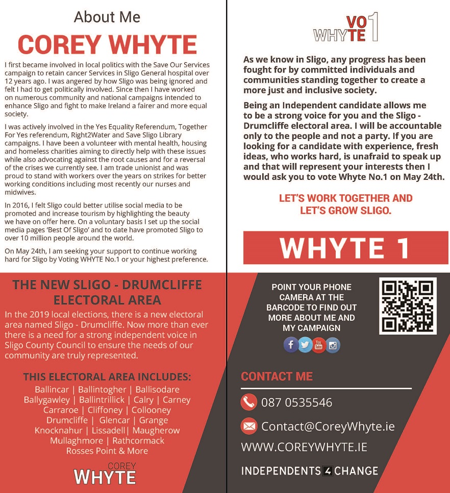 Leaflet from Corey Whyte – Independents4Change – Sligo – Drumcliffe #LE19 » CoreyWhyte4