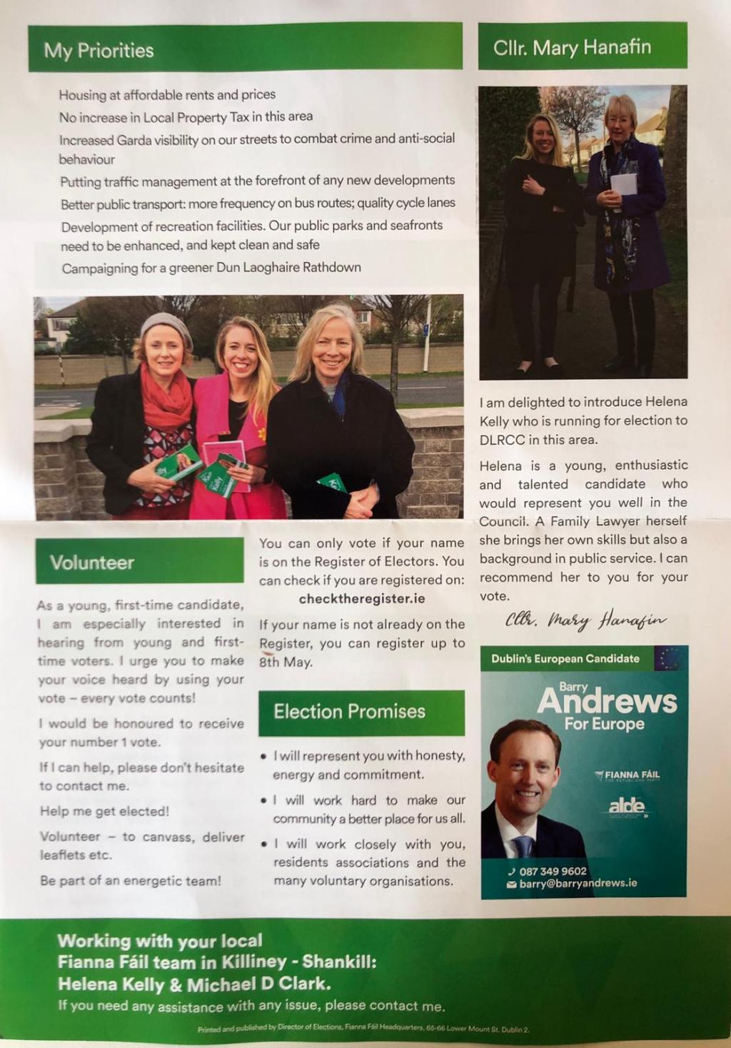 Leaflet from Helena Kelly -Fianna Fáil – Killiney Shankill #LE19 » HelenaKelly2