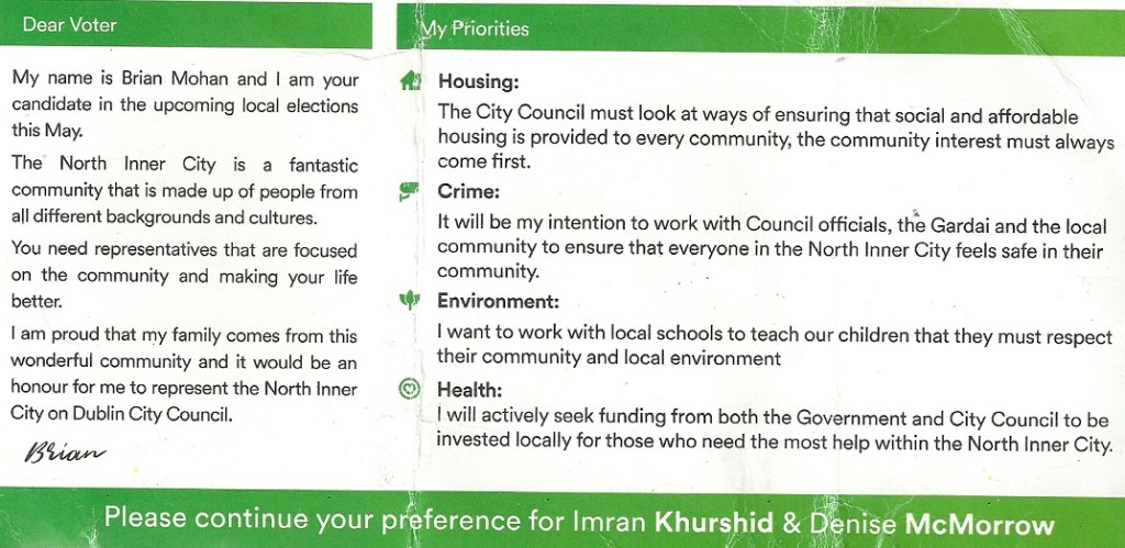 Leaflet from Brian Mohan – Fianna Fáil – North Inner City #LE19 » BrianMohan2