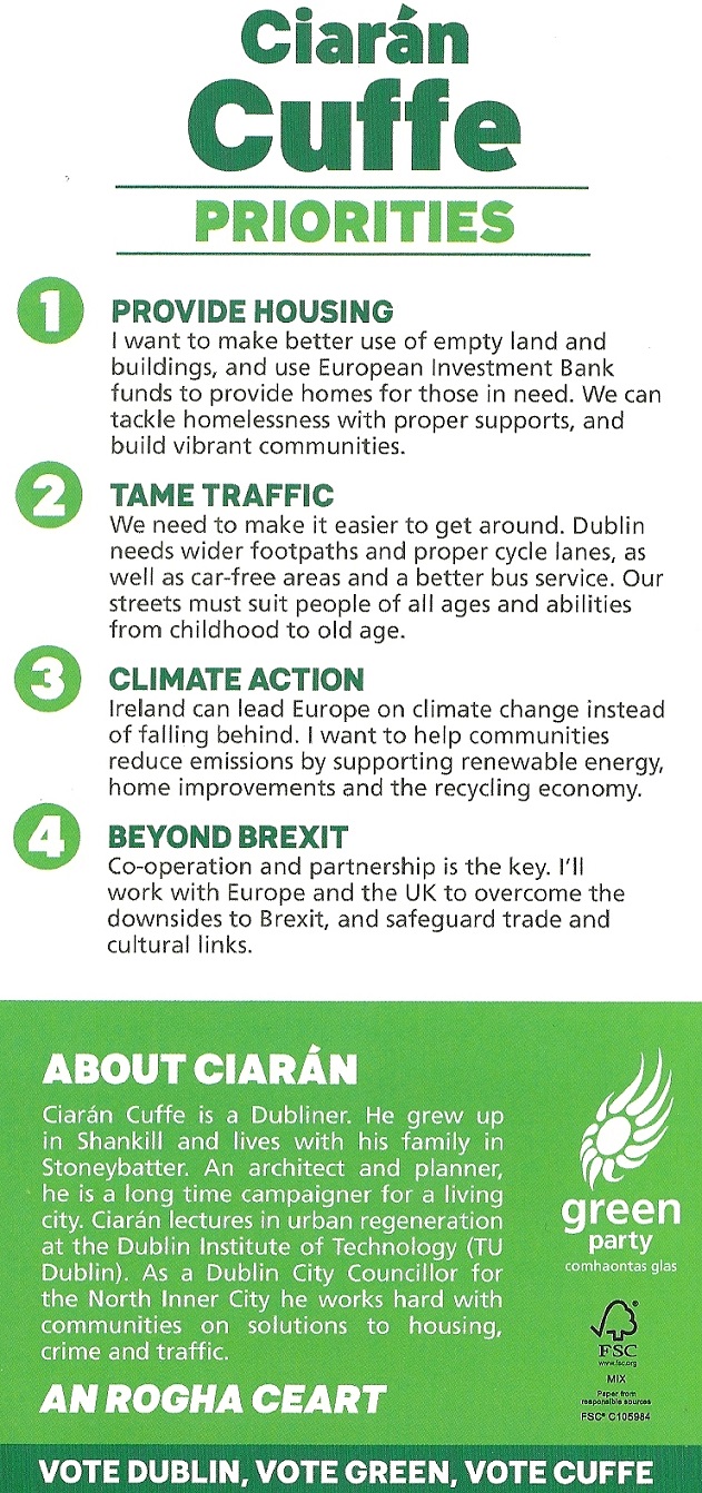 Leaflet from Ciarán Cuffe – Green Party – Dublin #EP2019 » CCuffeEP19b