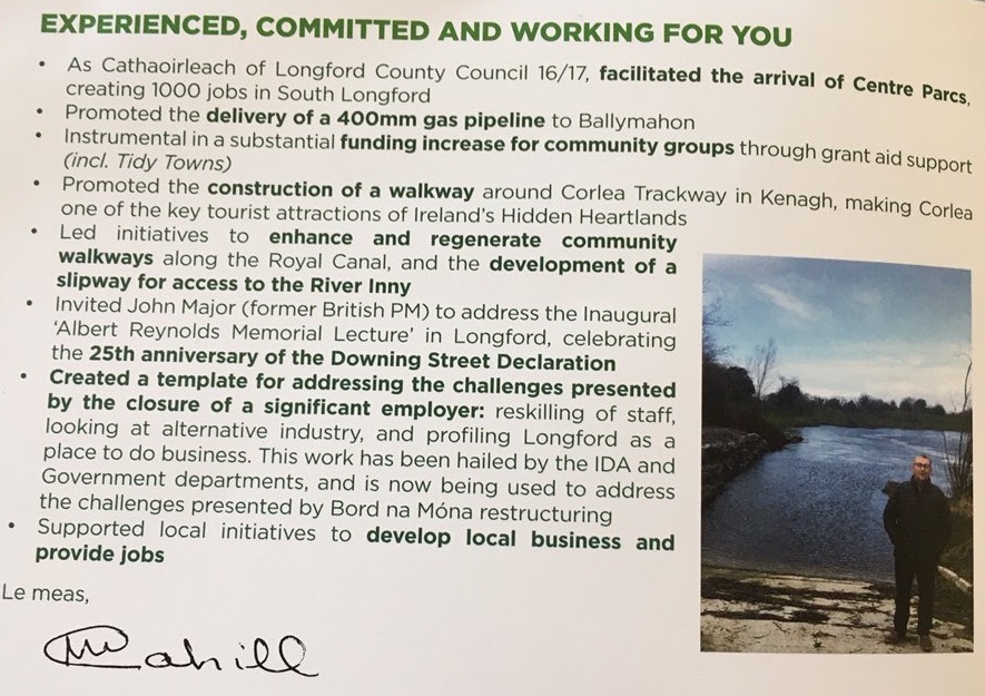 Leaflet from Mick Cahill – Fianna Fáil – Ballymahon #LE19 » MickCahill2