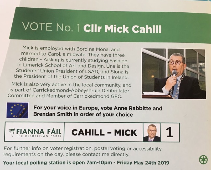 Leaflet from Mick Cahill – Fianna Fáil – Ballymahon #LE19 » MickCahill5