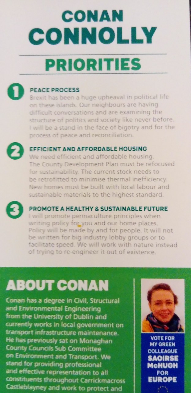 Leaflet from Cónan Connolly -Green Party – Carrickmacross Castleblayney #LE19 » ConanConnolly2
