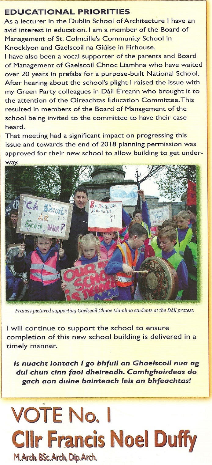 Leaflet from Francis Noel Duffy – Green Party – Firhouse-Bohernabreena #LE19 » FrancisNoelDuffy3