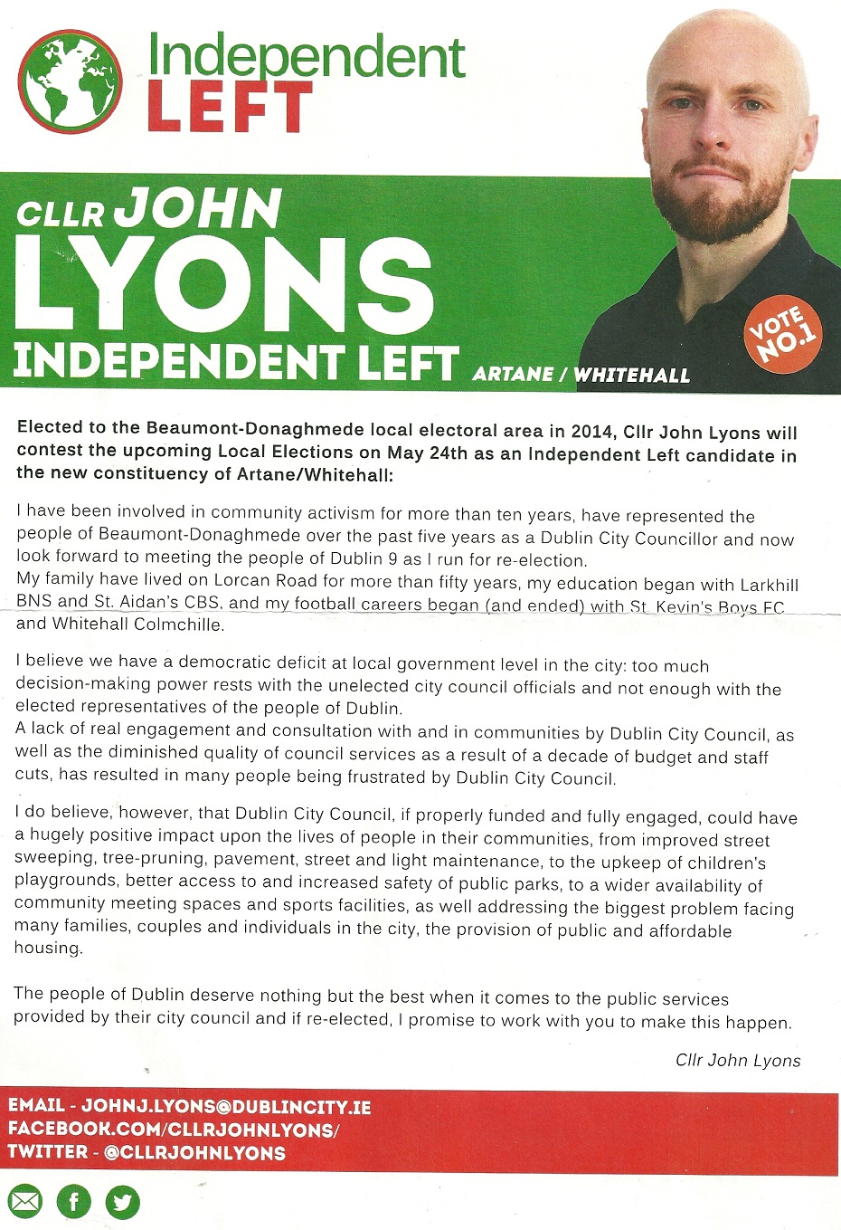 Leaflet from John Lyons -Independent Left – Artane Whitehall #LE19 » JohnLyons1