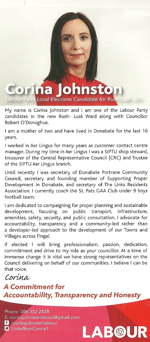 Leaflet from Corina Johnston – Labour – Rush Lusk #LE19 » CorinaJohnston2