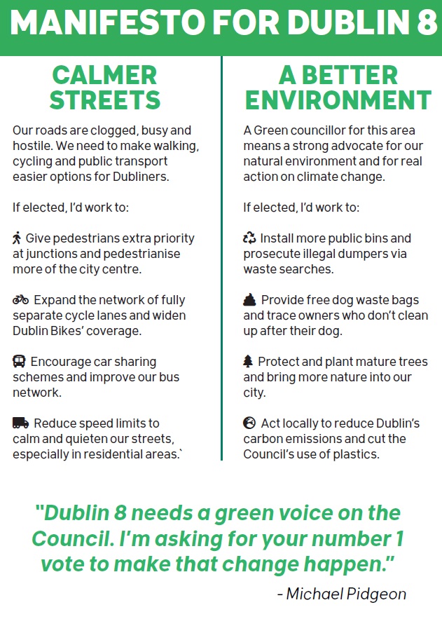 Leaflet from Michael Pidgeon – Green Party -South West Inner City #LE19 » Mpidgeonnew2