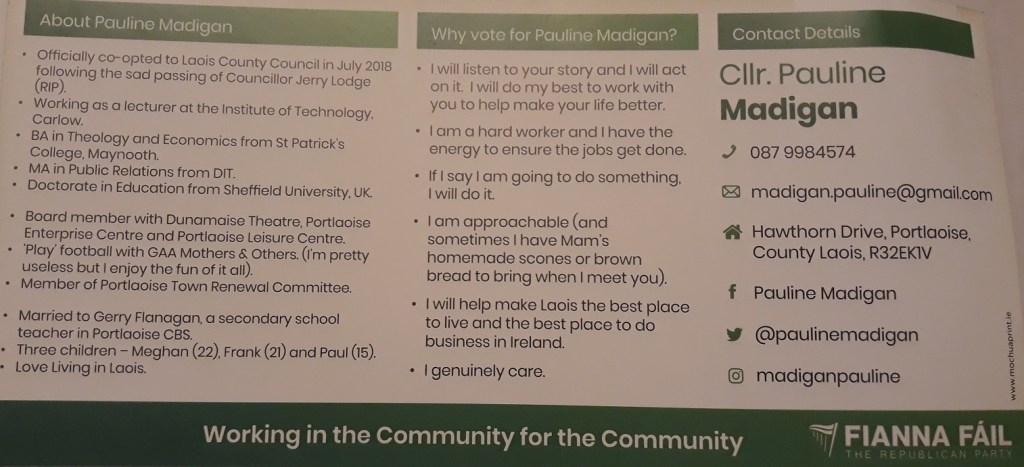 Leaflet from Pauline Madigan -Fianna Fáil – Portlaoise #LE19 » PaulineMadigan2