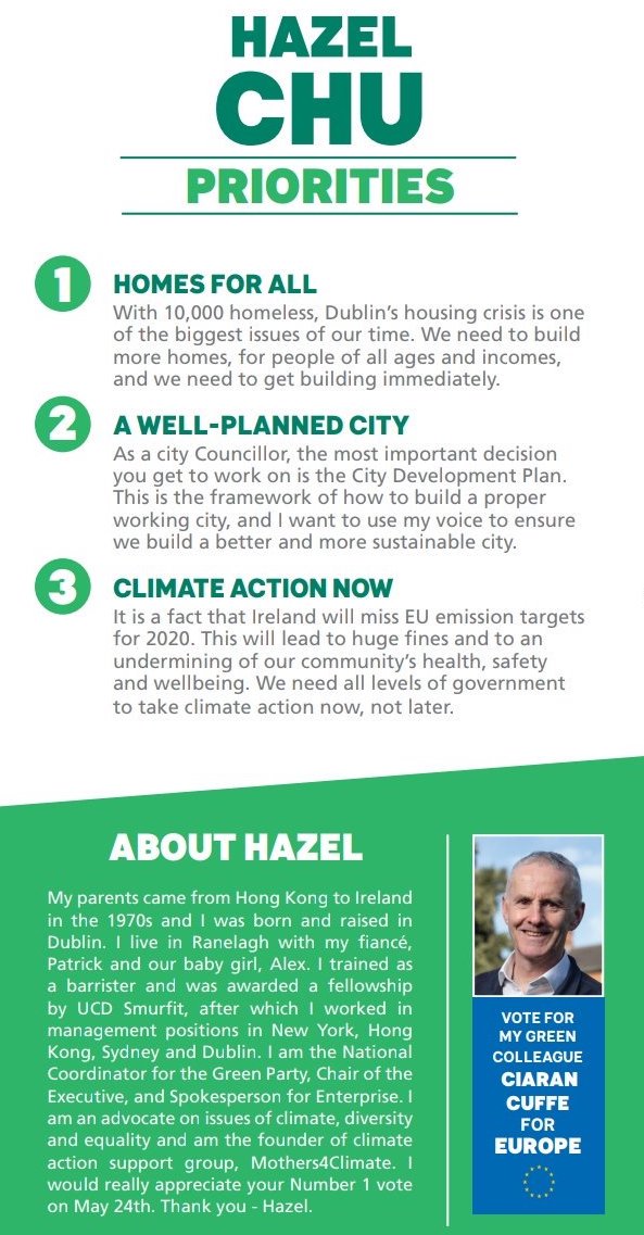 Leaflet from Hazel Chu – Green Party – Pembroke #LE19 » HazelChu2