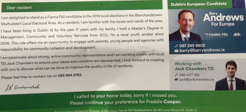 Leaflet from JK Onwumereh – Fianna Fáil – Blanchardstown-Mulhuddart #LE19 » JKOnwumereh2