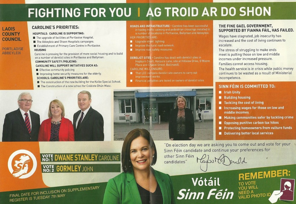 Leaflet from Caroline Dwane Stanley – Sinn Féin -Portlaoise Abbeyleix #LE19 » CarolineDwaneStanley3