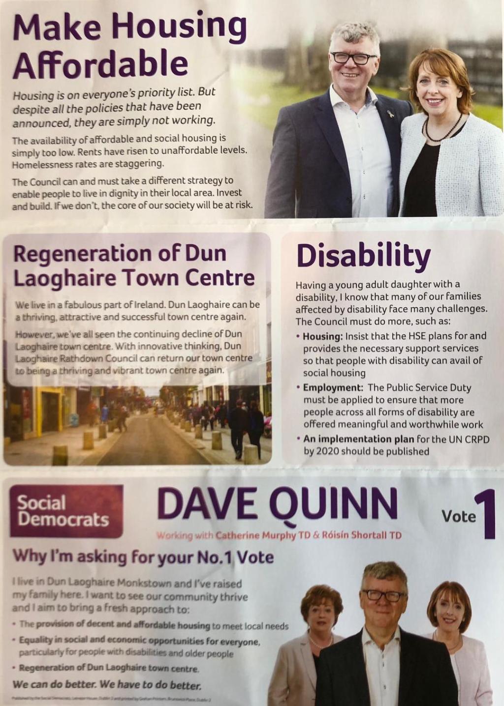 Leaflet from Dave Quinn – Social Democrats – Dun Laoghaire #LE19 » DaveQuinn2