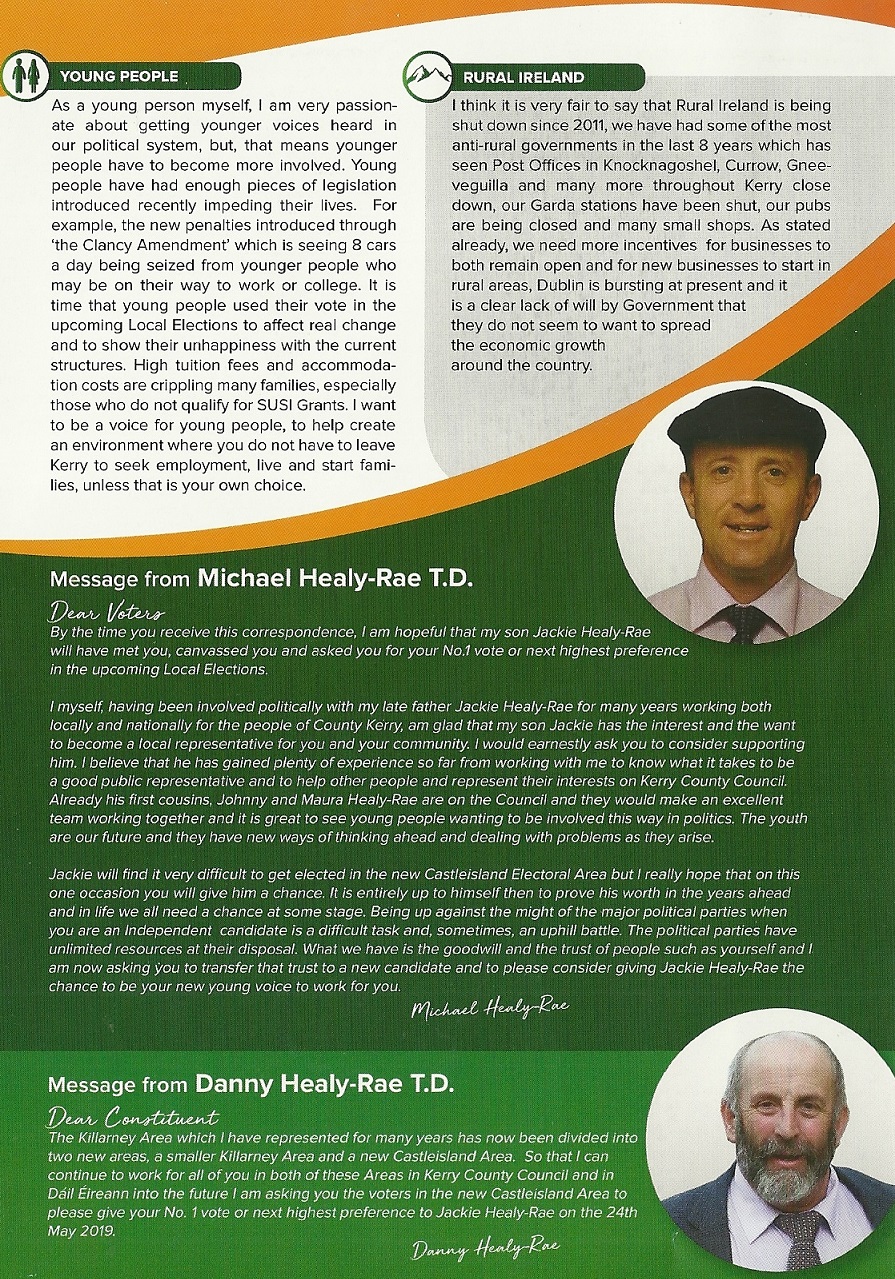 Leaflet from Jackie Healy-Rae Jnr- Independent – Castleisland #LE19 » JackieHealyRae4