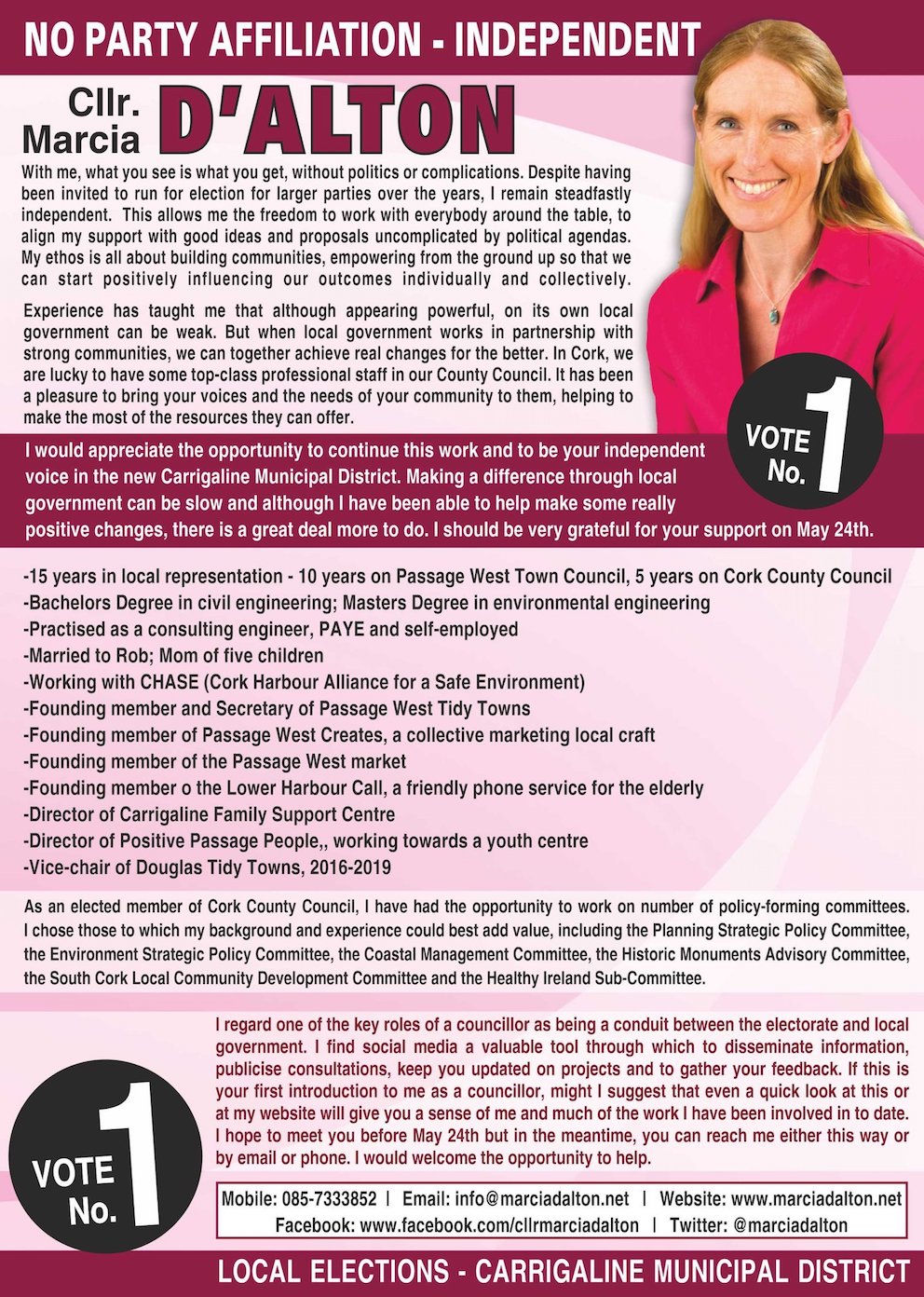 Leaflet from Marcia D’Alton – Independent – Carrigaline #LE19 » MarciaDalton2