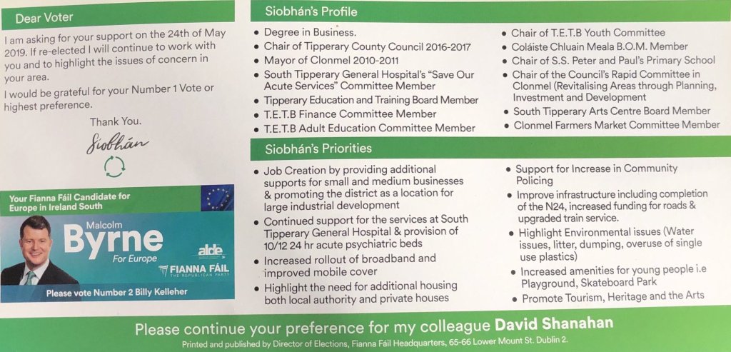 Leaflet from Siobhan Ambrose -Fianna Fáil – Clonmel #LE19 » SiobhanAmbrose2