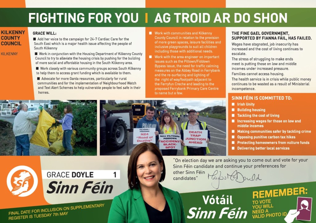 Leaflet from Grace Doyle -Sinn Féin -Piltown #LE19 » GraceDoyle3