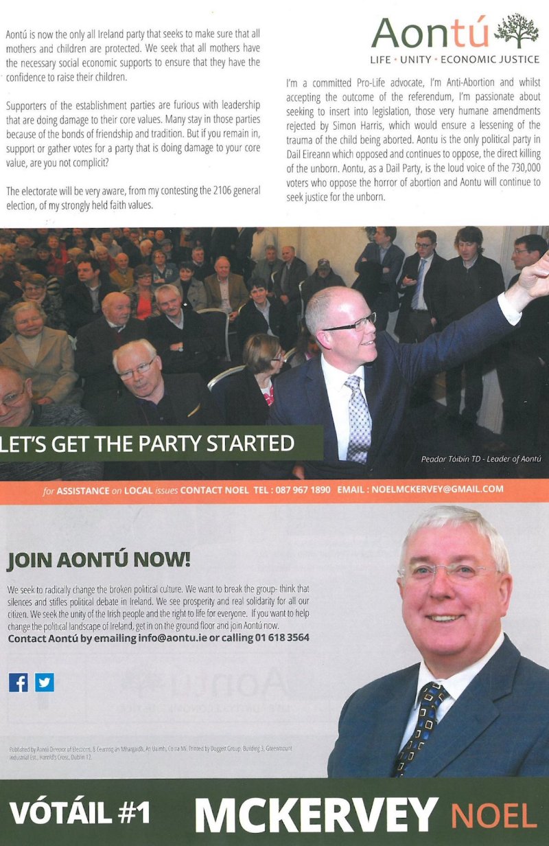 Leaflet from Noel McKervey -Aontú – Athlone (Westmeath) #LE19 May 4, 2019