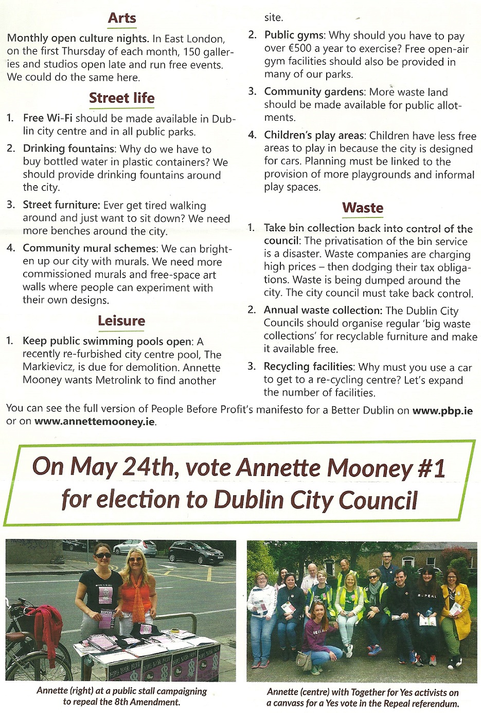 Leaflet from Annette Mooney – People Before Profit – South East Inner City #LE19 » AnnetteMooneyLE19b