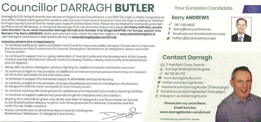 Leaflet from Darragh Butler – Fianna Fáil – Swords #LE19 » DarraghButler2