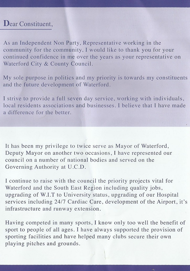 Leaflet from David Daniels -Independent – Waterford City East #LE19 » DavidDanielsind2