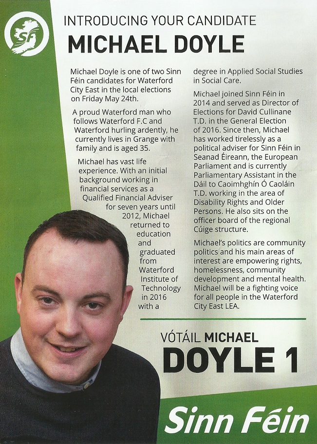 Leaflet from Michael Doyle – Sinn Féin – Waterford City East #LE19 » MichaelDoyle2a