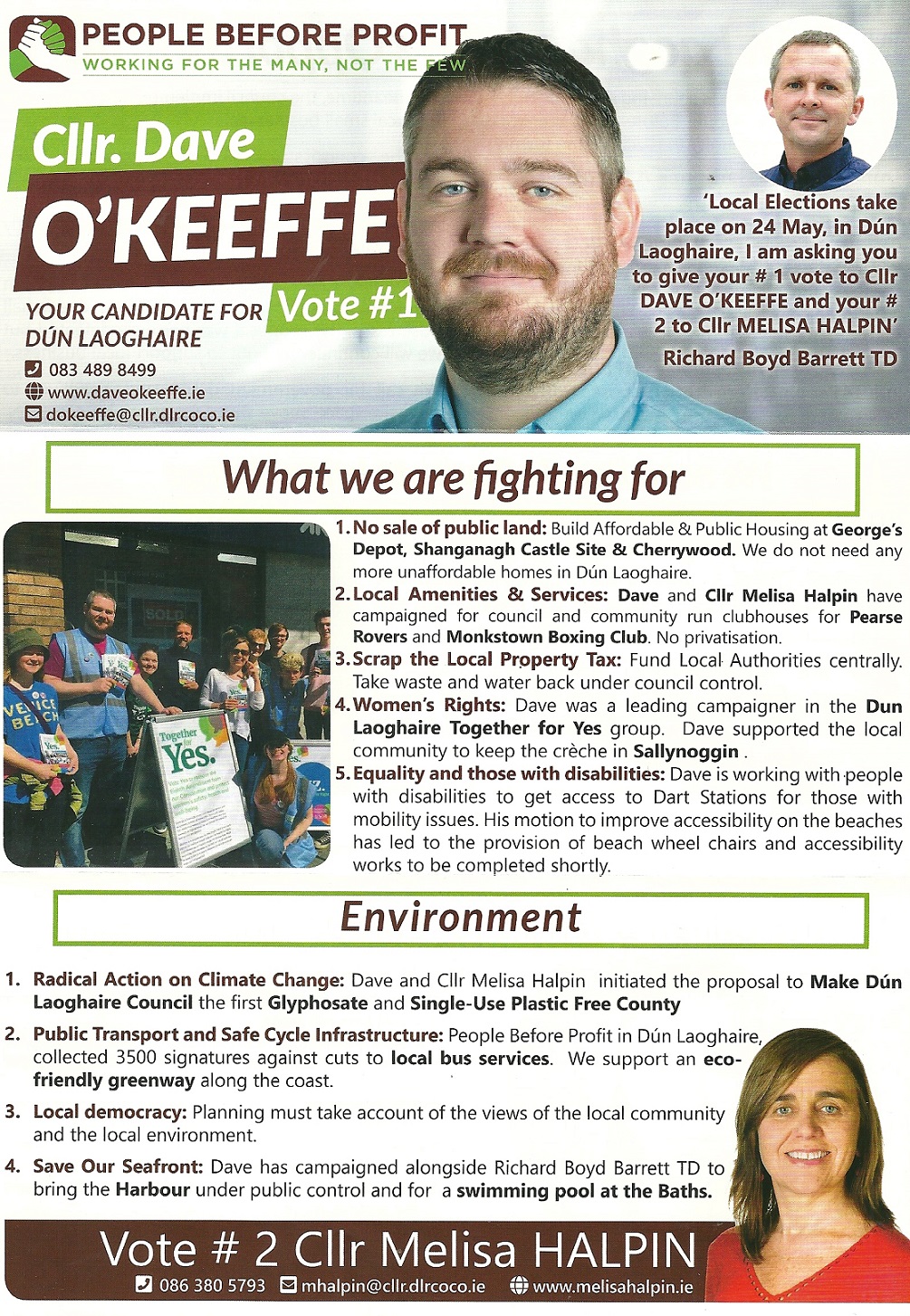 Leaflet from Dave O’Keeffe – People Before Profit – Dun Laoghaire #LE19 » DaveOKeefe1