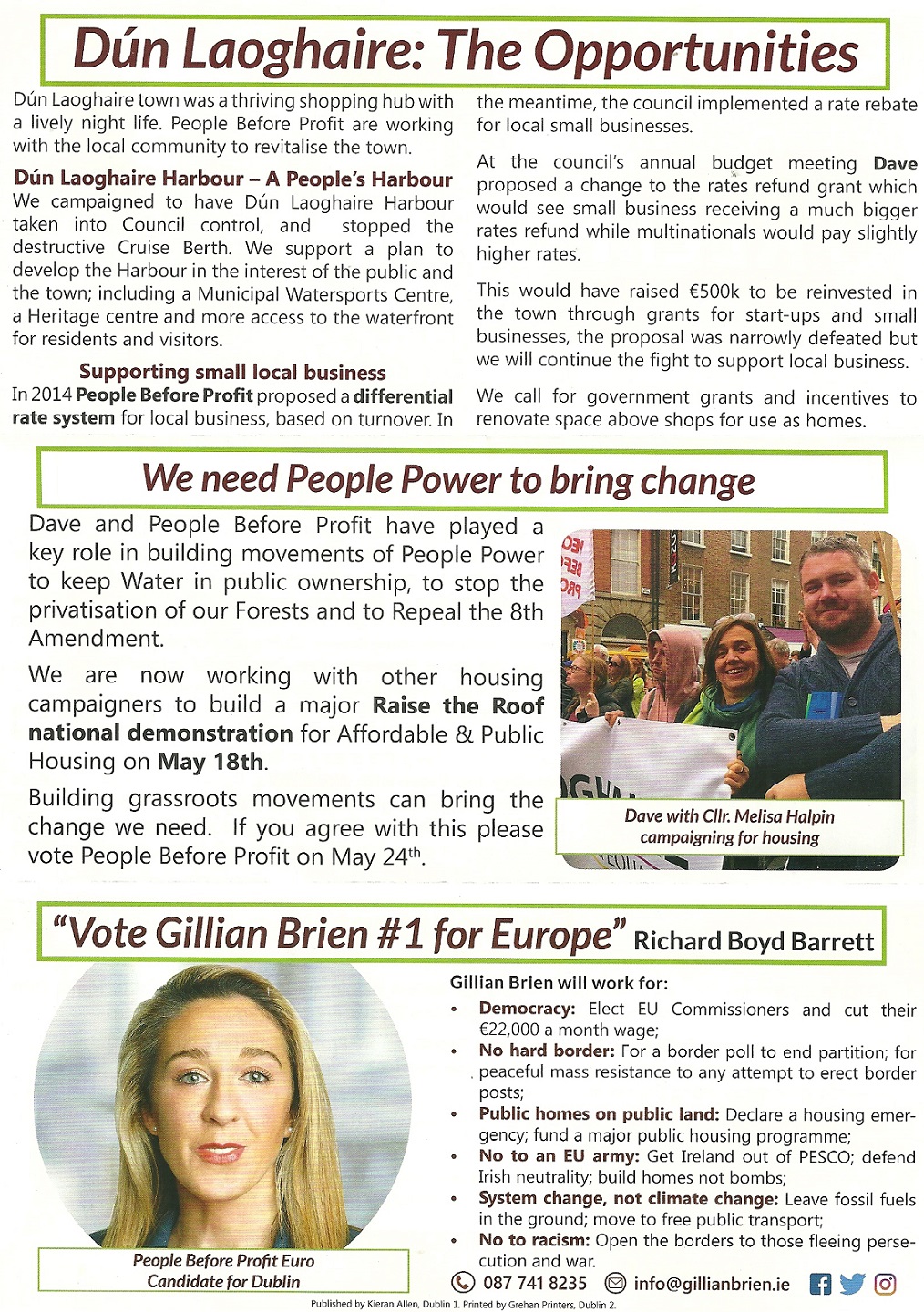 Leaflet from Dave O’Keeffe – People Before Profit – Dun Laoghaire #LE19 » DaveOKeefe2