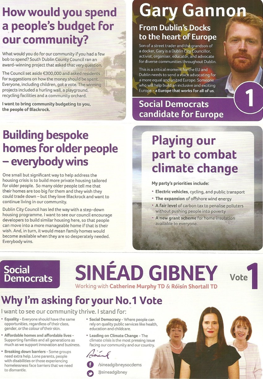 A Leaflet from Sinéad Gibney of The Social Democrats running in Blackrock for a seat on Dun Laoghaire Rathdown County Council.