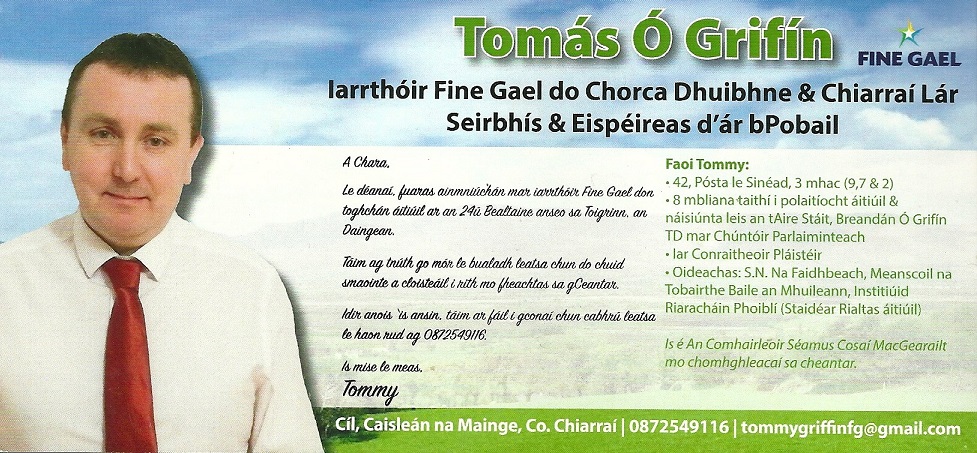 Bileog As Gaelige Agus As Bearla -Tommy Griffin – Fine Gael – An Daingean » TommyGriffin1