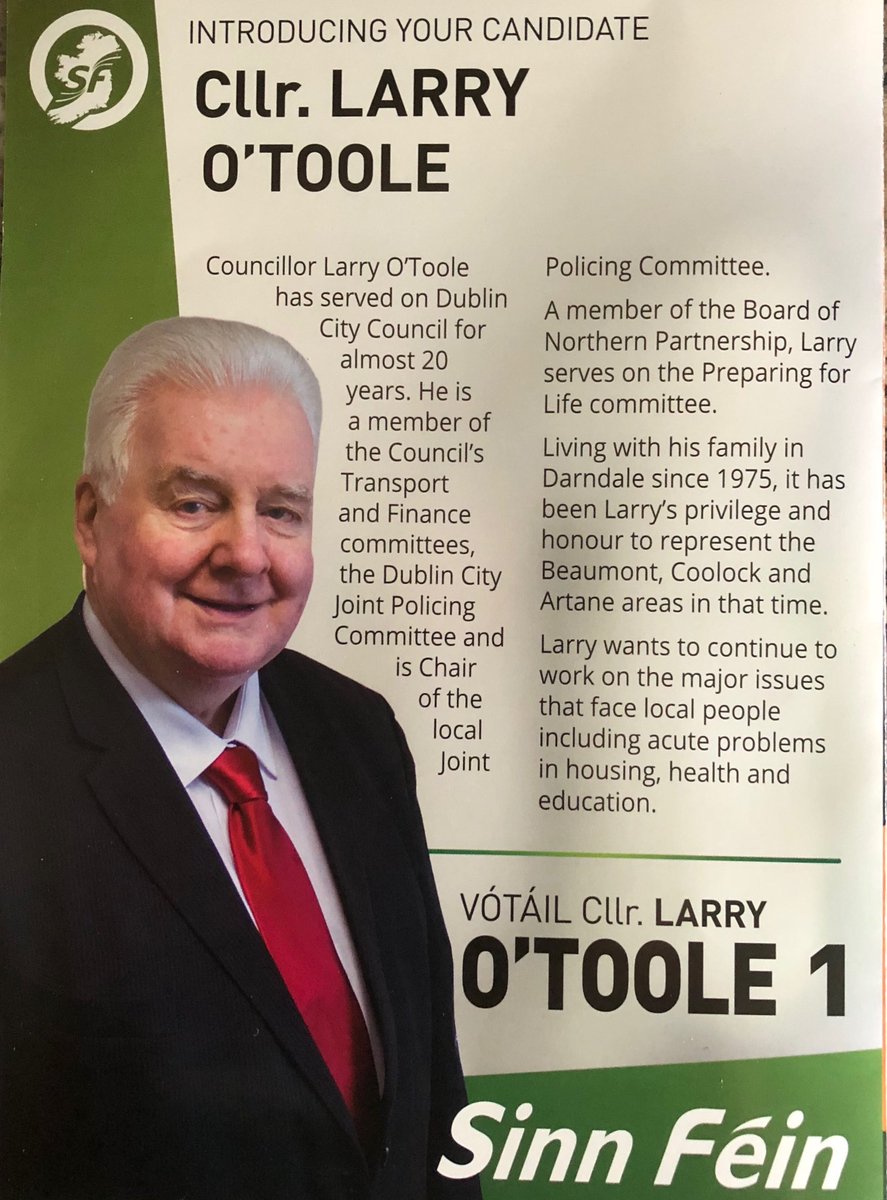 Leaflet from Larry O’Toole – Sinn Féin -Artane-Whitehall #LE19 » LarryOToole2