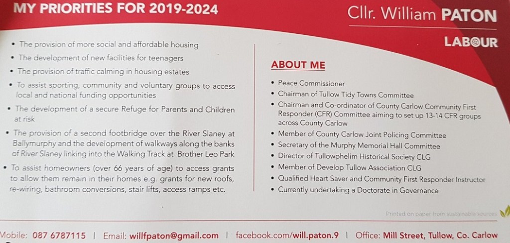 Leaflet from William Patton – Labour – Tullow #LE19 » WilliamPatton3