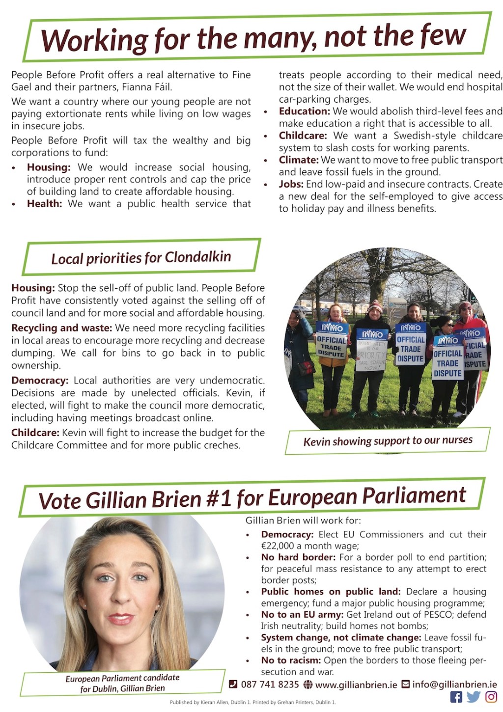 Leaflet from Kevin Creagh – People Before Profit – Clondalkin #LE19 » kevin-creagh-lel-2019_2