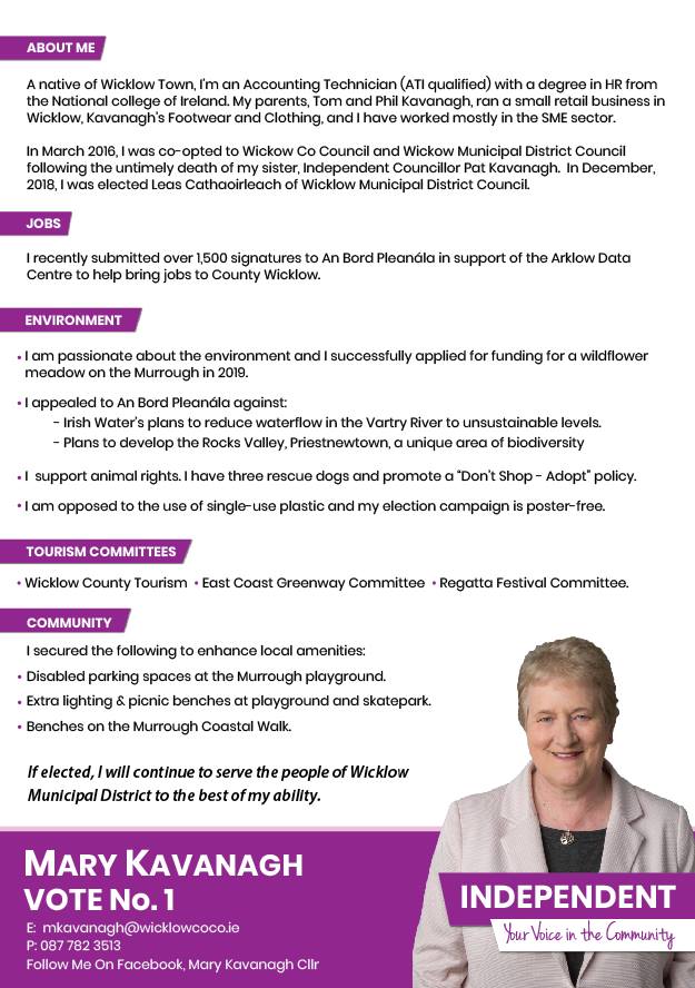 Leaflet from Mary Kavanagh – Independent – Wicklow #LE19 » MaryKavanagh2