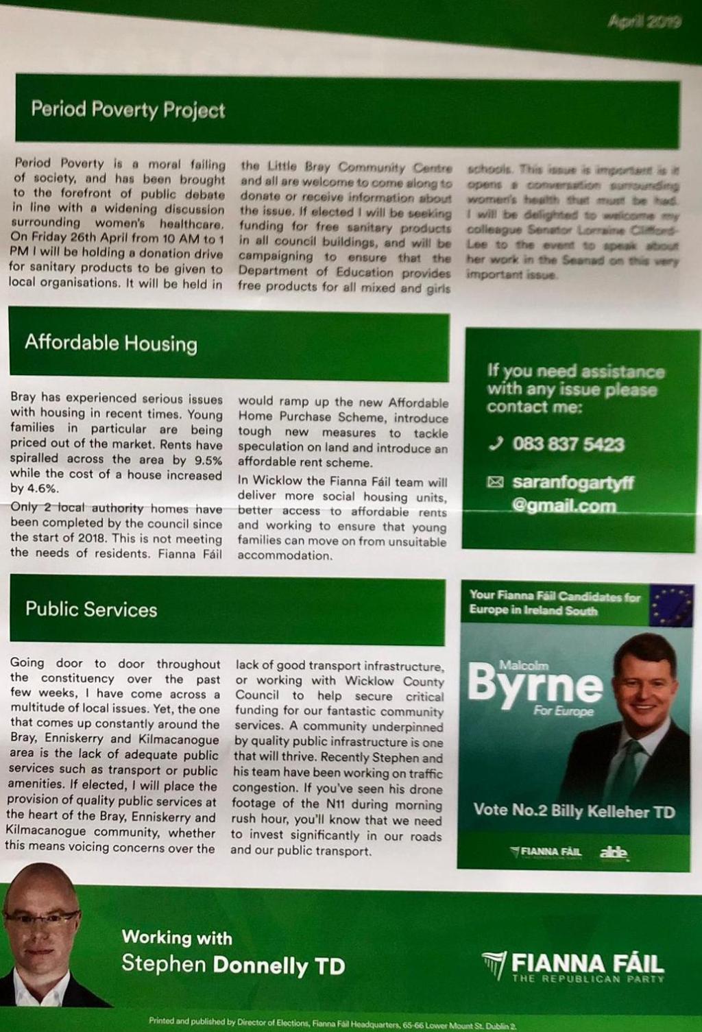 Leaflet from Sárán Fogarty – Fianna Fáil – Bray West #LE19 » SaranFogarty2