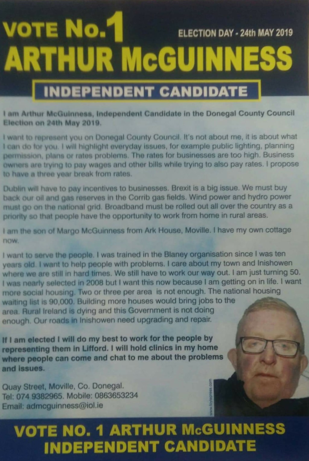 Leaflet from Arthur McGuinness – Independent – Carndonagh #LE19 » ArthurMcGuinness