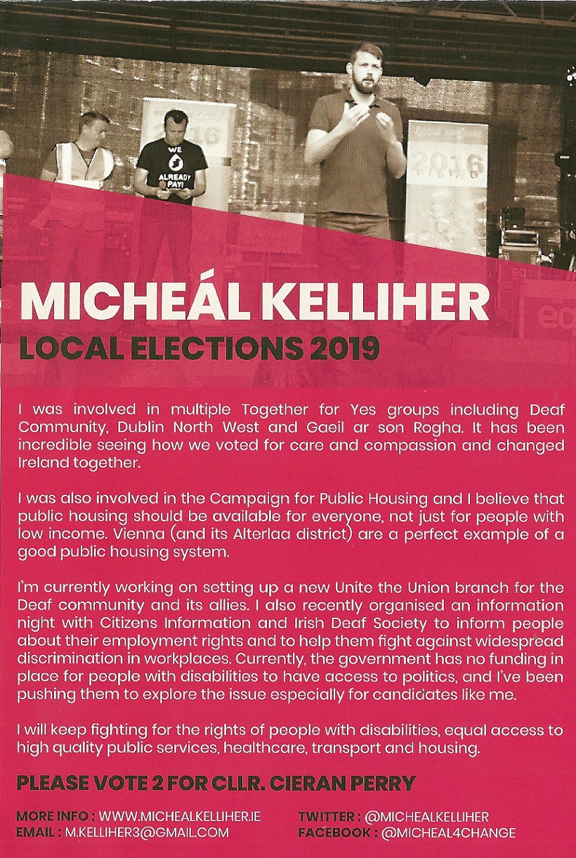 Leaflet from Micheál Kelliher -Independents4Change – Cabra Glasnevin #LE19 » MichealKelliher2