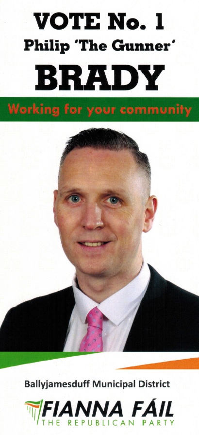 Leaflet from Philip “The Gunner” Brady- Fianna Fáil -Ballyjamesduff #LE19 » PhilipBrady1