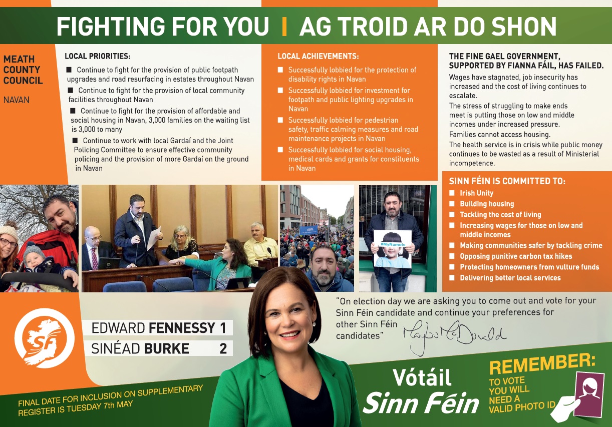 Leaflet from Geraldine Harten, Noel Connell – Sinn Féin – Ballyjamesduff #LE19 » EdwardFennessy3